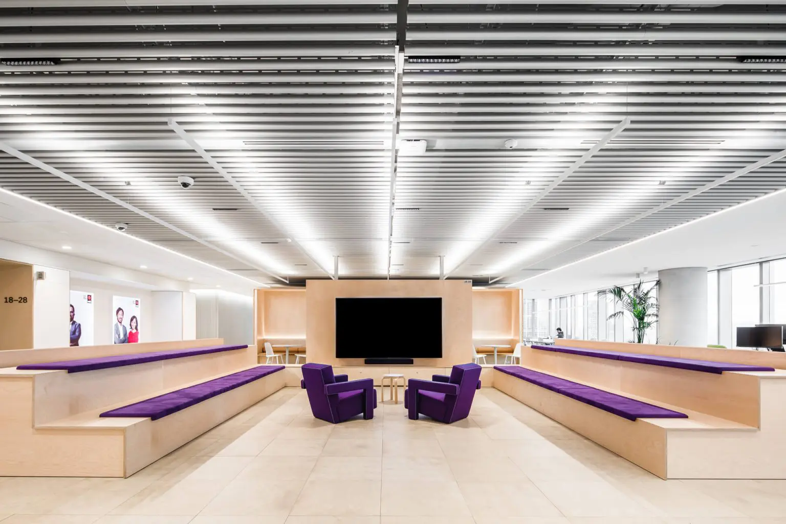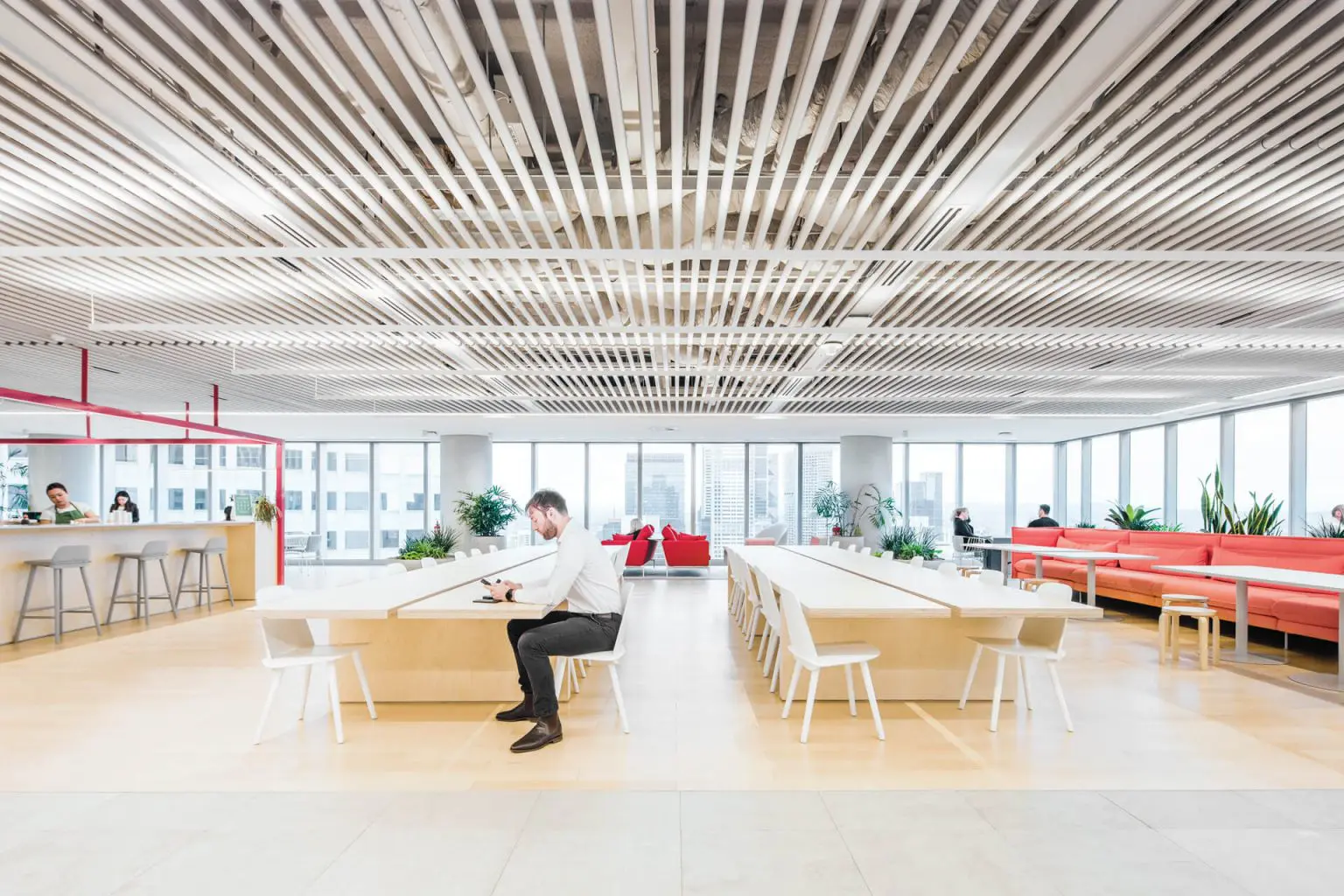 Utilising VOC-free powder-coated panels, the office radiates a level of sophistication which is often not seen in commercial buildings of this size.This considered approach to materiality, sustainability, and spatial flexibility positions NAB Melbourne as a contemporary workplace designed to support wellbeing, collaboration, and long-term performance.